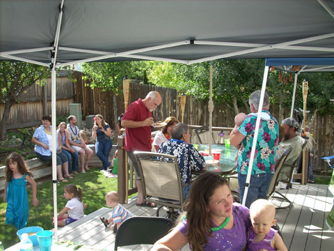 Glad that Ringo came to chill at the Luau – I’d heard he was hiking across the Rockies, but he gave up those dreams to wear a grass skirt on Ruskin’s deck instead. Love Ya Steve!