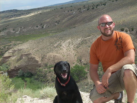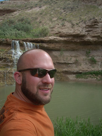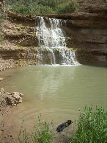 Roxy and I on an overlook of the canyony landscape… see the little waterfall in the corner??