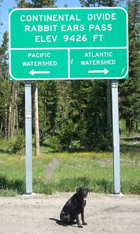 GREAT!! The Divide Sign! We missed the one on Trail Ridge Road and Roxy wouldn’t let it drop. She was ridin’ me like a stick-horse over that! (stolen -TB!) She hopped out for the pic and just cause she was still salty, she faced back home…