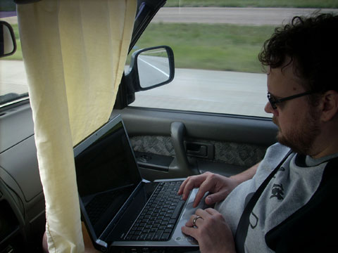Driving up the Pass, Shane loved my combination of steering and shooting pics!