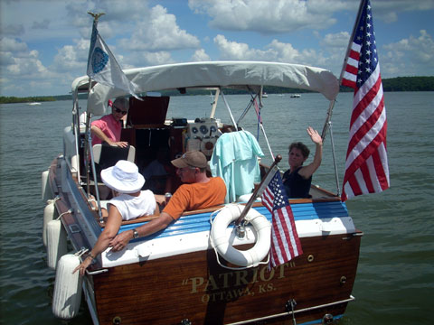 Saturday the 31st at Clinton Lake, We all partook in the Re-naming ceremony for Uncle Stan’s Chris Craft Cabin Cruiser!